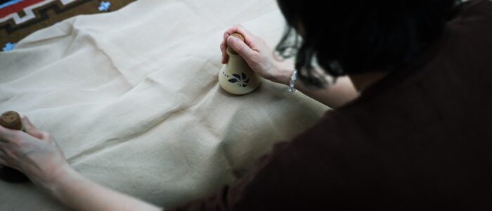 石垣島の大自然の中にある工房で一人の女性作家さんの手により生み出されている陶器。使われているクチャ(沖縄の泥)には体感できないほどの微弱な電波の振動があり筋肉をほぐす作用があります。沖縄の大地と海の記憶がある魂を持つ『やちむんぼおる』にお湯を注ぎそちらを使用し施術をしていきます。なんとも言えない至福感と安心感のある温かさでカラダやこころの奥まで深く深く緩んでいきます。